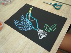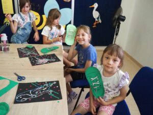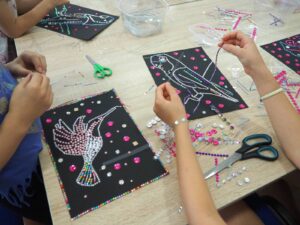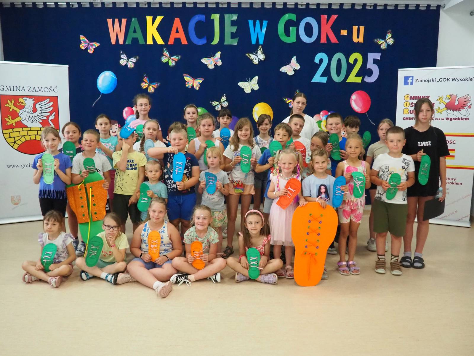 Kolejny dzień „Wakacji w GOK-u i w Izbie” był kreatywny, kolorowy i praktyczny. We wtorek, 15.07.2025 r., w Gminnym Ośrodku Kultury Gminy Zamość w Wysokiem odbyły się 2 warsztatowe zajęcia tematyczne: wyklejanie różnych wzorów z użyciem samoprzylepnych „brylancików”, potocznie zwanych dżetami, oraz plastyczno-edukacyjne prace „obuwnicze”, po których nikt nie powinien mieć już problemów z wiązaniem sznurówek. Frekwencja dopisała! Zabawa była przednia.