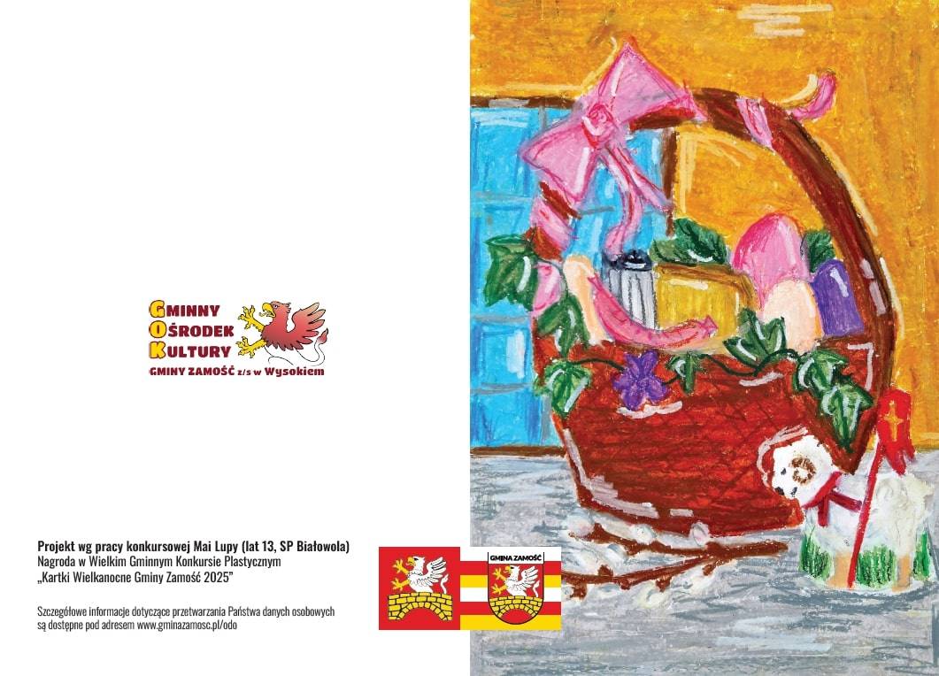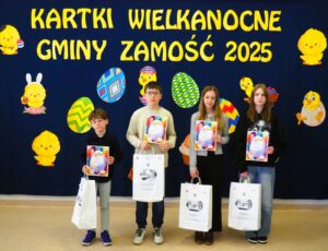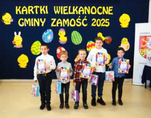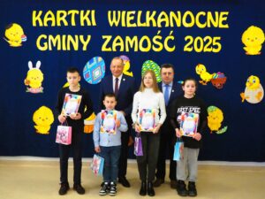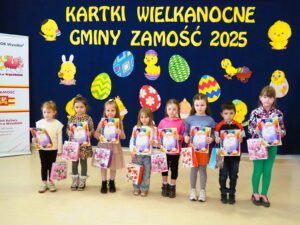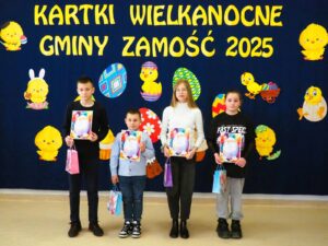 Organizator bardzo dziękuje dyrektorom i kadrze z placówek oświatowych i opiekuńczo-wychowawczych z terenu Gminy Zamość, a także rodzicom i opiekunom uczestników finału za zaangażowanie i pomoc w realizacji całego tego przedsięwzięcia wielkanocnego. Oficjalne kartki gminne w ilości ponad 400 trafią do licznych instytucji i osób. Gratulujemy wszystkim laureatom i wyróżnionym. Serdecznie dziękujemy wszystkim uczestnikom za udział i życzymy spokojnych Świat.