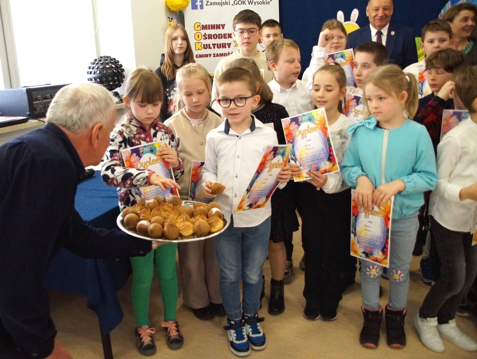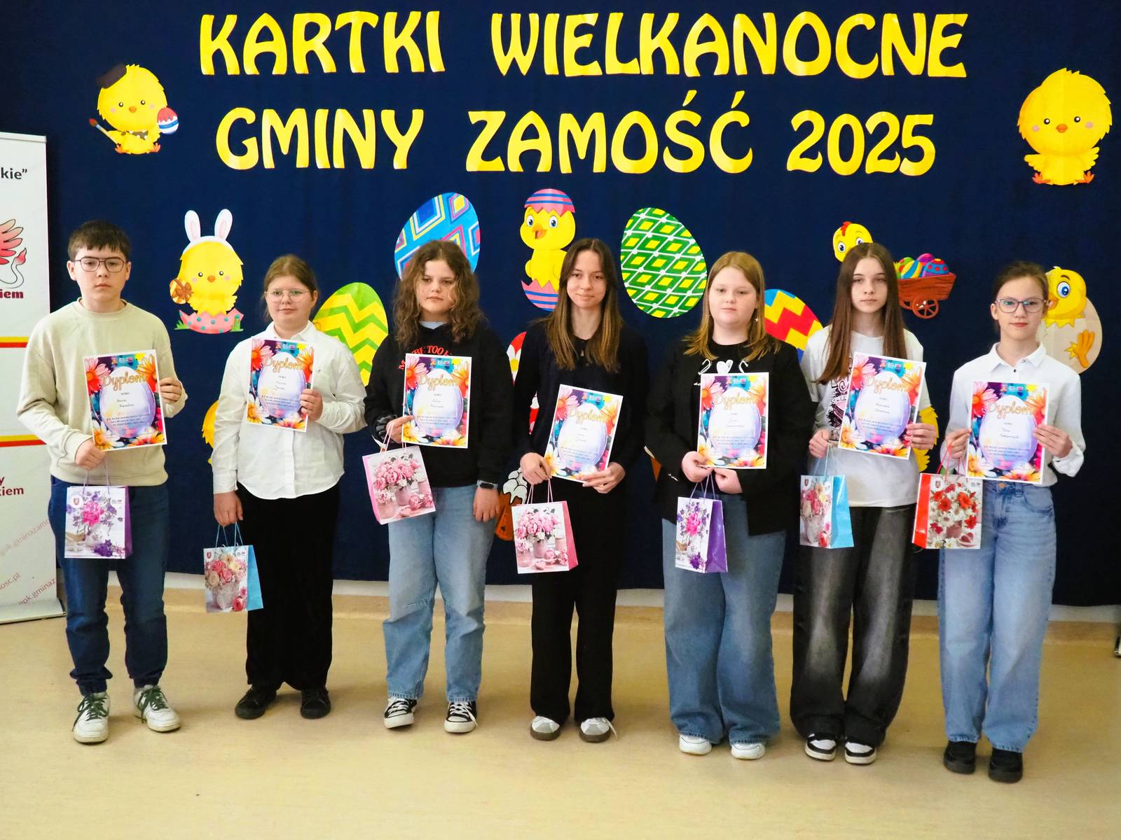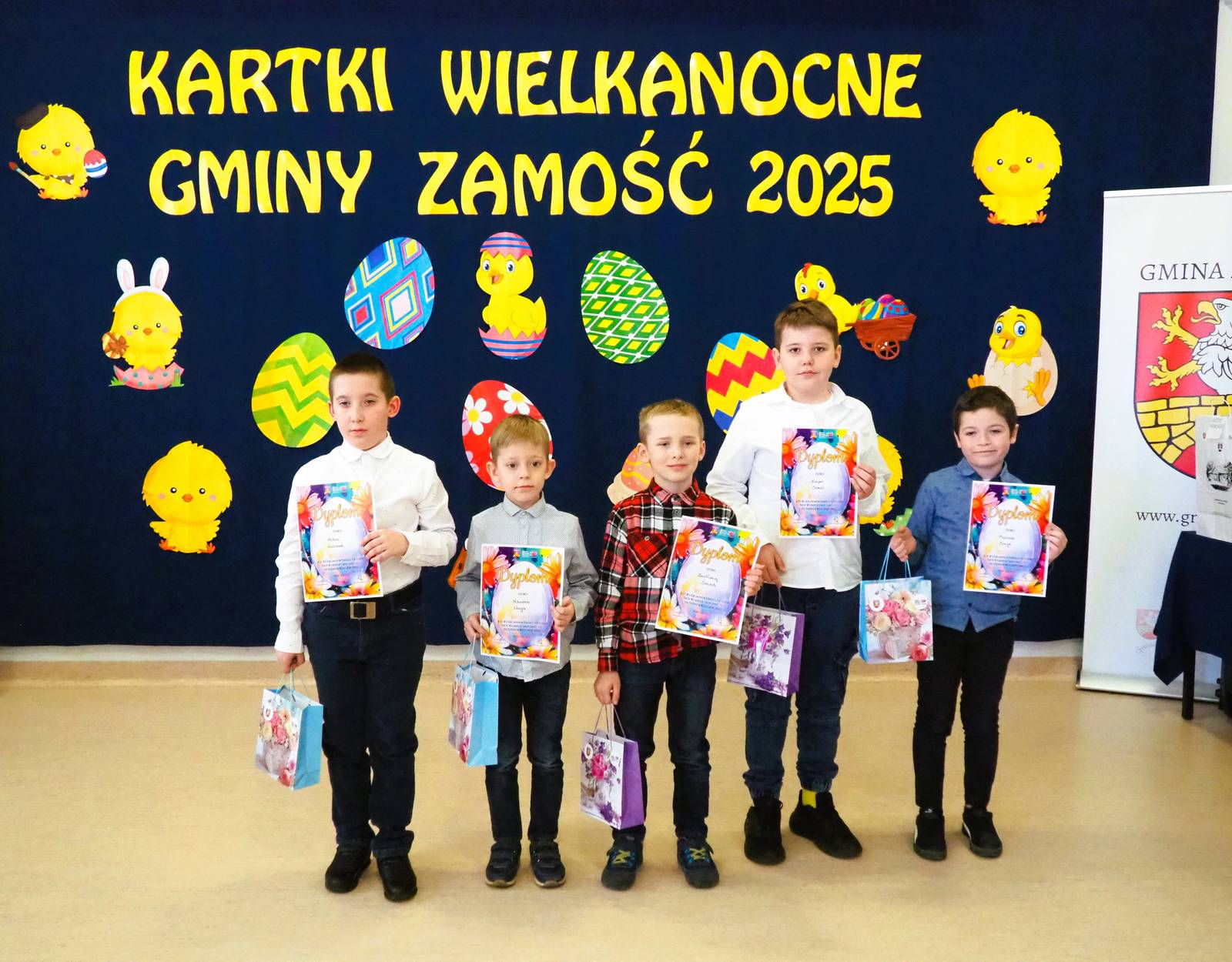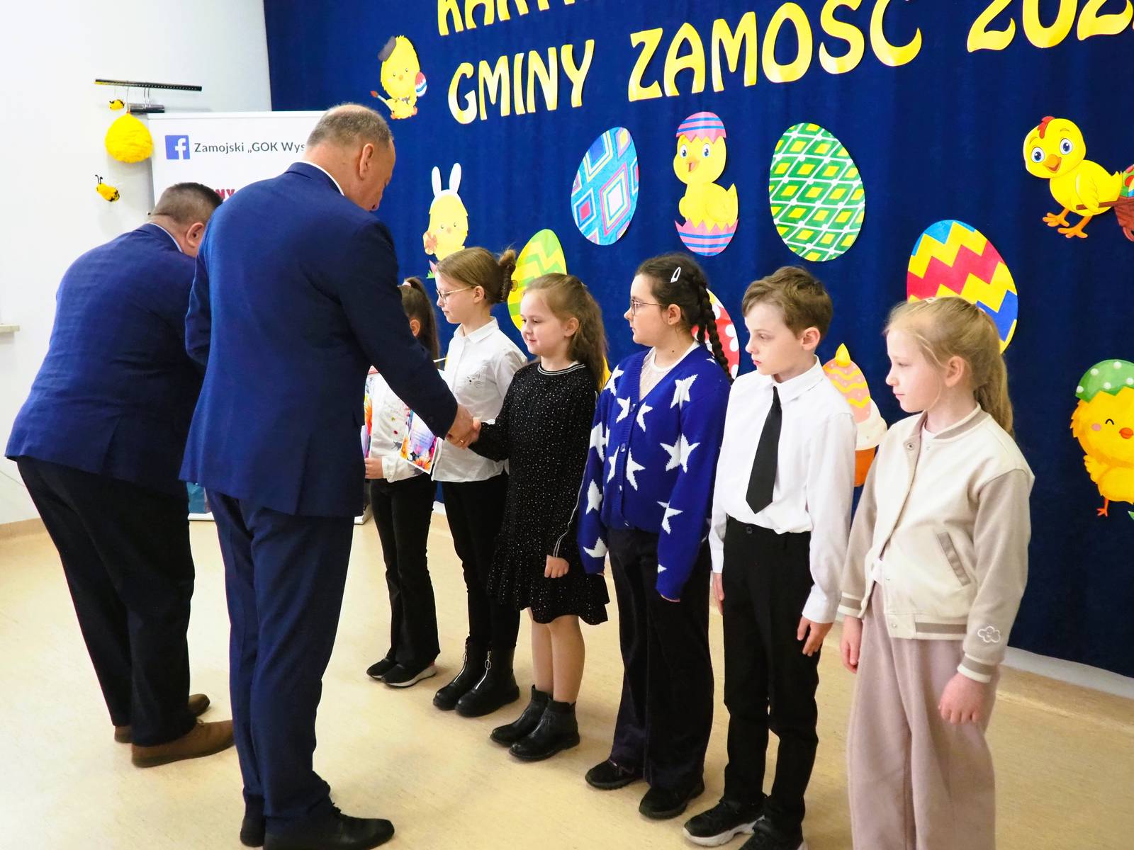 Aż 513 prac wpłynęło na XXI Wielki Gminny Konkurs Plastyczny „Kartki Wielkanocne Gminy Zamość 2025” pod patronatem Wójta Ryszarda Gliwińskiego. Od 10 lat konkurs organizuje Gminny Ośrodek Kultury Gminy Zamość w Wysokiem. Jury wyróżniło 70 prac i wybrało tzw. „Wielką Piątkę”, czyli 5 równorzędnych głównych prac (zobacz poniżej gotowe projekty gminnych pocztówek na Wielkanoc). Ogłoszenie wyników i wręczenie nagród odbyło się w czwartek, 10.04.2025 r., na uroczystym spotkaniu finałowym w siedzibie GOK-u (poniżej foto-relacja). Dyplomy i nagrody wręczali Wójt Ryszard Gliwiński oraz Przewodniczący Rady Gminy Zamość Piotr Koczułap.