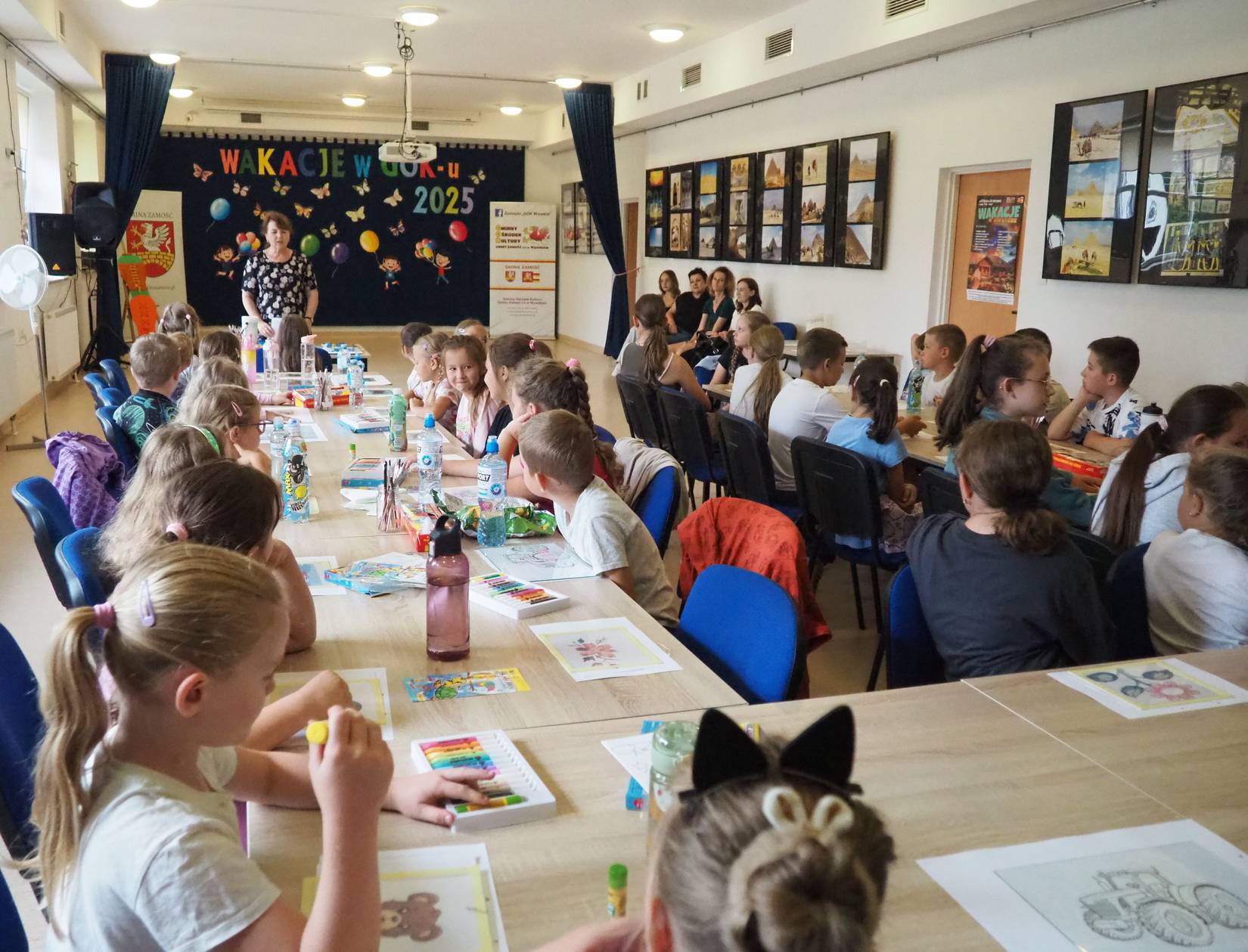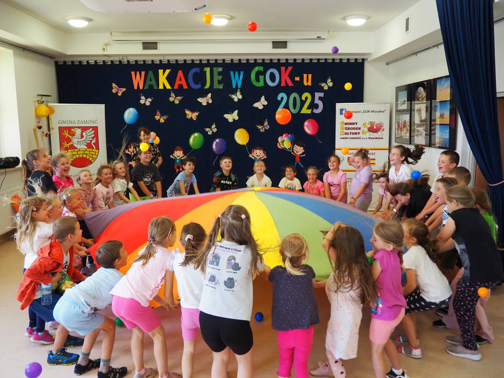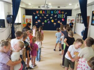 We wtorek, 22.07.2025 r., Zamojski „GOK Wysokie” tętnił dziecięcą kreatywnością, energią i radosnym śmiechem. Tego dnia odbyły się wyjątkowe zajęcia w ramach letniej oferty wakacyjnej pod hasłem „Wakacje w GOK-u i Izbie”. Tym razem na zajęcia przyszło aż 41 dzieci. Ekipa GOK-u przygotowała specjalne atrakcje, które pozwoliły najmłodszym twórczo, aktywnie i przyjemnie spędzić wakacyjny czas.