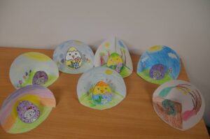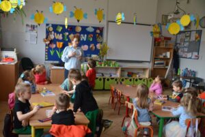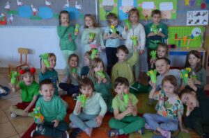 Marcowe zajęcia kreatywne z dziećmi ze szkoły w Wysokiem objęły następujące tematy: baranek z bujną grzywą, pisanka w muszli, wiosenna trawka i talerzyk przedstawiający zrównanie dnia z nocą. Raz w tygodniu animatorka z Gminnego Ośrodka Kultury Gminy Zamość w Wysokiem organizuje zajęcia kreatywno-plastyczne dla najmłodszych podopiecznych świetlicy szkolnej w wysockiej placówce oświatowej. Jedyne rzeczy, jakie dzieci muszą mieć podczas zajęć to chęci i wyobraźnię. Na czterech spotkaniach zajęciowych powstały piękne prace pod okiem Pani Ewy – animatorki z Zamojskiego „GOK-u Wysokie”.
