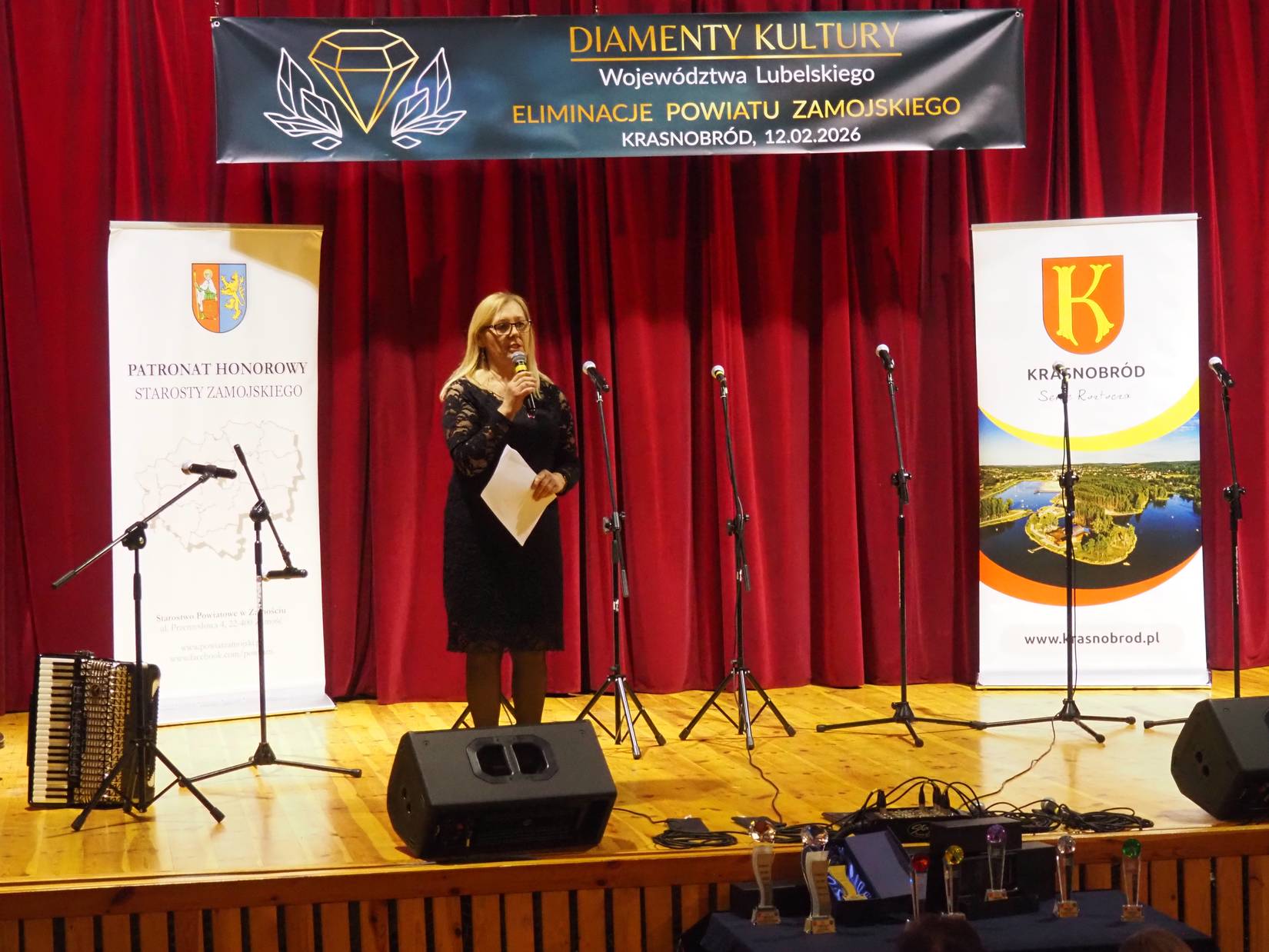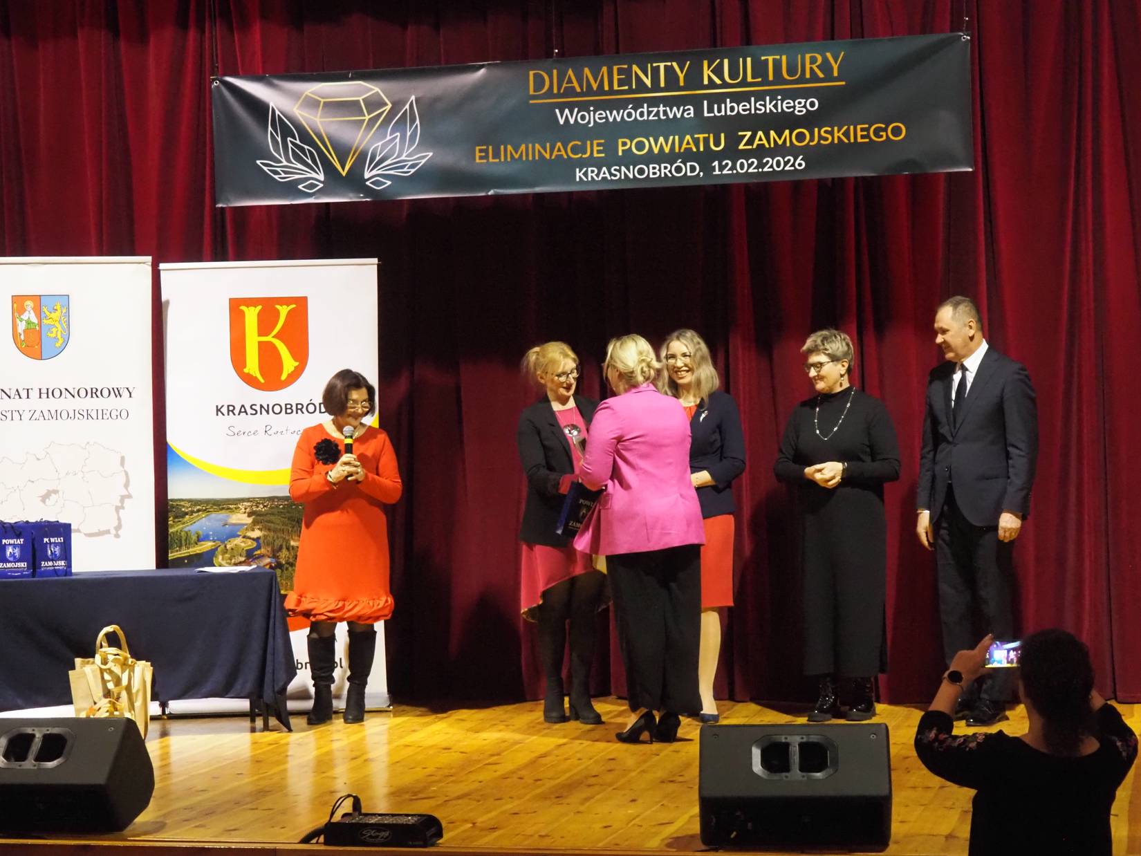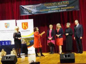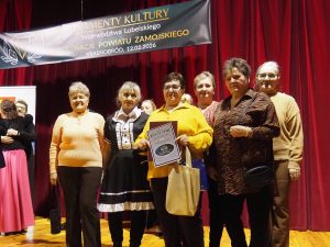 Eliminacje dla Powiatu Zamojskiego odbyły się 12.02.2026 r. w Krasnobrodzie. Wydarzenie otworzyła Mariola Czapla – dyrektorka Krasnobrodzkiego Domu Kultury. Gminę Zamość reprezentowały 2 formacje: żeński zespół wokalny „Ale Cantare” z Płoskiego pod dyrekcją Barbary Rabiegi oraz Grupa Teatralno-Kabaretowa „Susełek” z Hubal prowadzona przez Renatę Wilk. Płoszczańskie wokalistki przygotowały jeden szczególny utwór konkursowy – znaną piosenkę Zbigniewa Wodeckiego „Zacznij od Bacha” w opracowaniu aranżacyjnym Grzegorza Miśkiewicza. Z kolei „Susełek” przedstawił kostiumową „Sztukę o mało co teatralną” kabareciarza Władysława Sikory w reżyserii Renaty Wilk. Łącznie do eliminacji dla Powiatu Zamojskiego zgłoszono 16 kandydatur w 3 kategoriach: wydarzenie kulturalne, twórczość artystyczna i odkrycie roku. Obie formacje z Gminy Zamość wystąpiły w kategorii twórczość artystyczna, w ramach której jurorzy obejrzeli 4 prezentacje konkursowe (w tym 2 z Gminy Zamość). Regulaminowo Jury mogło awansować na finał wojewódzki tylko jeden podmiot artystyczny w tej kategorii – zdecydowano, że będzie to „Ale Cantare”. W kwietniu br. w Centrum Spotkania Kultur w Lublinie nastąpi etap wojewódzki konkursu, natomiast uroczysta Gala Finałowa z ogłoszeniem ostatecznych wyników odbędzie się 15 maja 2026 r. Głównym organizatorem Konkursu „Diamenty Kultury Województwa Lubelskiego” jest CSK w Lublinie przy wsparciu organizacyjnym Województwa Lubelskiego.