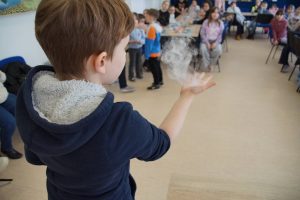 Wtorek, 17.02.2026 r., był dniem czekoladowych słodkości i bezpiecznych pokazów ogniowo-dymnych. Animatorzy z sali zabaw „Hop Bęc” w Zamościu rozpuszczali czekoladę, by dzieci mogły stworzyć z niej słodycze własnej roboty z dodatkami. Każdy mógł wybrać sobie foremkę do produkcji wymarzonej tabliczki czekolady. W roli dodatków wystąpiły m.in. żelki, pianki, słonecznik i kolorowe posypki. Gdy foremki stygły dzieci malowały ozdobne pudełeczka na czekoladę, a potem miały okazję zobaczyć jak robi się na dłoni bezpieczne bańki dymne lub ogniowe. Co odważniejsi mogli doświadczyć tych sztuczek na własnych dłoniach. Wszystkie tabliczki czekolady dzieci zabrały do domu.