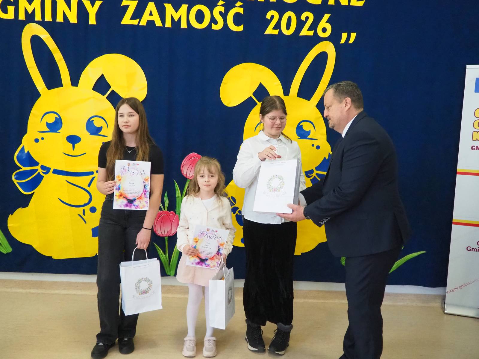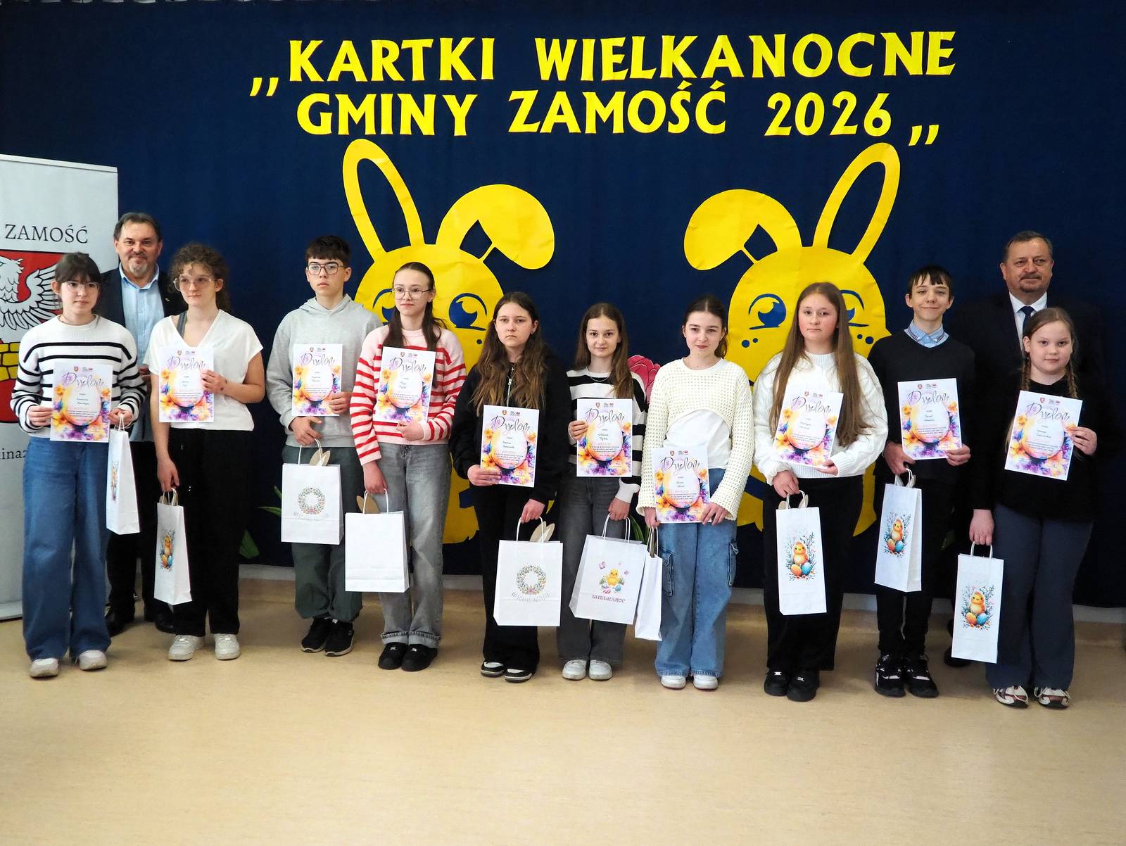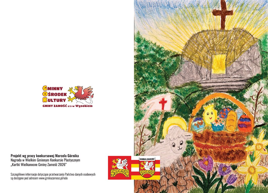 409 prac wpłynęło do XXII Wielkiego Gminnego Konkursu Plastycznego „Kartki Wielkanocne Gminy Zamość 2026” pod patronatem Wójta Ryszarda Gliwińskiego. Konkurs zorganizował Gminny Ośrodek Kultury Gminy Zamość w Wysokiem. Jury wyróżniło 60 prac i wybrało zwycięską „Wielką Piątkę”, czyli 5 prac, które posłużą do druku świątecznych kartek pocztowych z herbem Gminy Zamość. Ogłoszenie wyników i uroczyste wręczenie nagród odbyło się w czwartek, 26.03.2026 r. w siedzibie GOK-u.