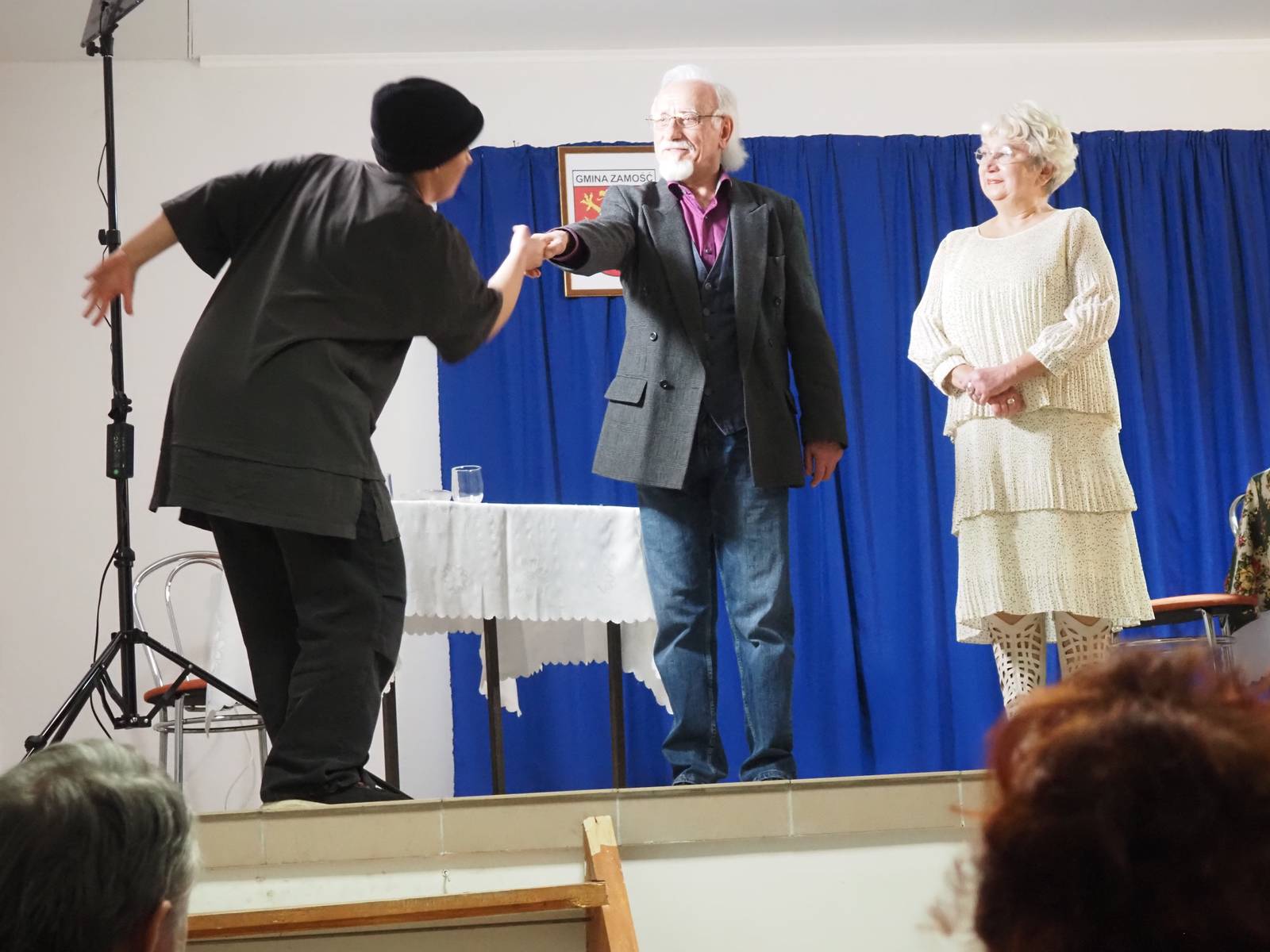 Publiczność na bazie komedii teatralnej miała unikalną okazję zaobserwować rzadko spotykany eksperyment – otóż, jedną z postaci odgrywały w sumie 3 panie, które zamieniały się na scenie w trakcie trwania przedstawienia i bez żadnych przerw. Okazało się, że ten zabieg nie tylko nie zakłóca ciągłości akcji, ale też wzbogaca wrażenia odbiorców. Reżyserowi i aktorom udało się zainteresować i skutecznie rozbawić publiczność. A to była dopiero część pierwsza spektaklu. Część drugą zaplanowano w tym samym miejscu za ponad miesiąc, tj. w niedzielę, 22.02.2026 r. Bezpośrednio po przedstawieniu reżyser i aktorzy spotkali się z publicznością przy gorącej herbacie. Komentarze i rozmowy nie ustawały, zwłaszcza że wśród widzów były także aktorki-amatorki z gminnej seniorskiej Grupy Teatralno-Kabaretowej „Susełek” z sołectwa Hubale. Organizatorzy i gospodarze wydarzenia są pewni większej frekwencji w lutym na części II, chociaż i teraz publiczność dopisała jak na tak trudne zimowe warunki. Warto dodać, że na kilka godzin przed widowiskiem dojazd i rejon świetlicy w Wierzchowinach został starannie odśnieżony przez ekipę z Gminnego Zakładu Obsługi Komunalnej, za co należą się słowa wdzięczności. Organizatorzy i gospodarze dziękują twórcom teatralnym z Zamościa i zgromadzonej publiczności, zapraszając do Wierzchowin na ciąg dalszy przedstawienia za ponad miesiąc.