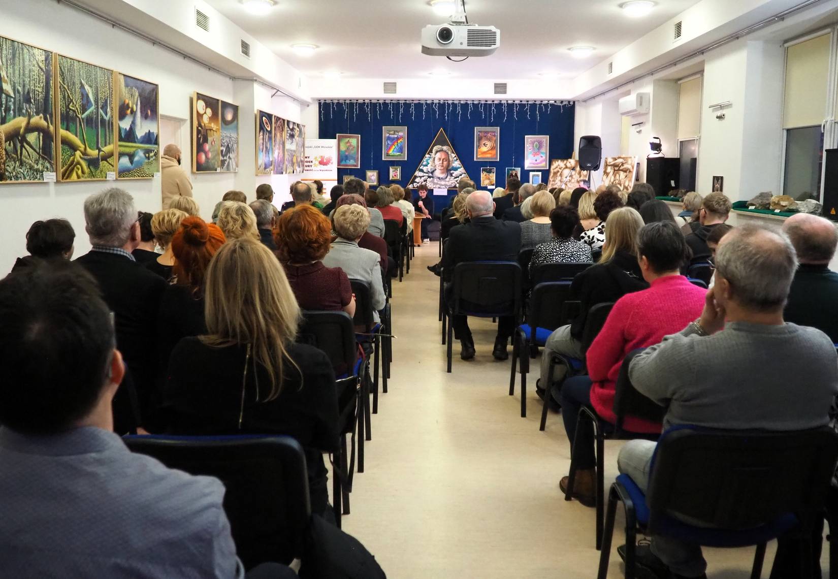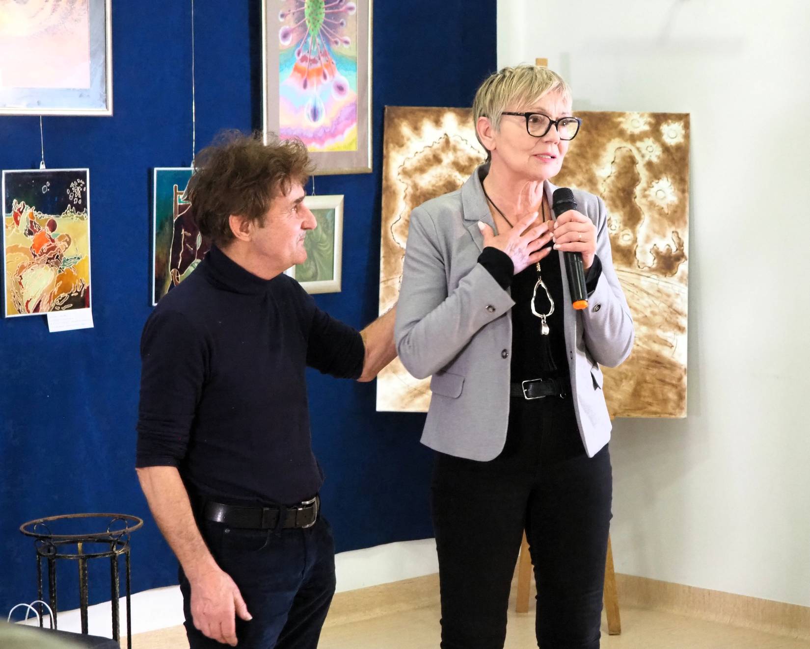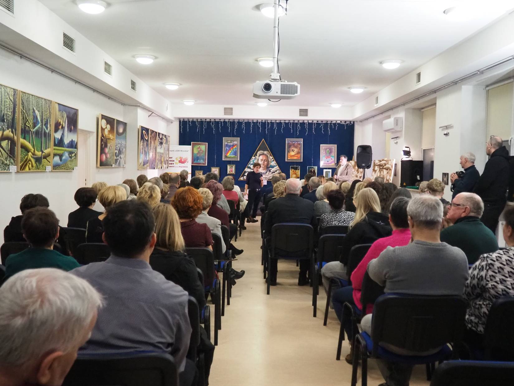 Przy niemal pełnej sali w Gminnym Ośrodku Kultury Gminy Zamość w Wysokiem miał miejsce wernisaż ku pamięci śp. Bożenny Gomułki, żony Roberta Gomułki, uznanego zamojskiego artysty malarza. Wydarzenie odbyło się w czwartek, 29.01.2026 r., z inicjatywy Pana Roberta, mieszkańca podzamojskiej wioski Wysokie. Pani Bożenna zmarła w listopadzie 2025 r. w wieku 68 lat wskutek przewlekłej choroby. Była dla męża najważniejszą osobą wspierającą i inspirującą jego artystyczny proces twórczy.
