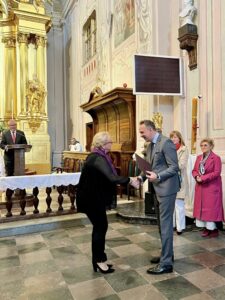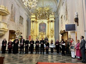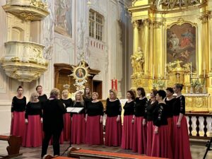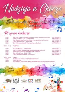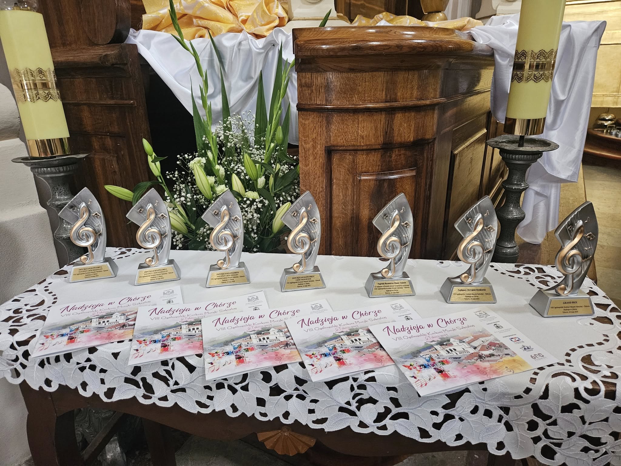 Chórzystki pod dyrekcją Barbary Rabiegi imponująco wyśpiewały kolejny „Srebrny Dyplom”, zdobywając 87 punktów w tykocińskim konkursie. Warto przypomnieć, że w poprzednich edycjach „Nadziei w Chórze”, tj. w roku 2021 „Ale Cantare” zdobyło wówczas „Srebrny Dyplom”, natomiast w 2022 roku „Złoty Dyplom”. Konkurs w Tykocinie zgromadził w sumie 10 wokalnych formacji artystycznych z całej Polski, które mogły rywalizować ze sobą w 7 kategoriach: „chóry jednorodne”, „chóry mieszane”, „chóry kameralne”, „chóry młodzieżowe”, „chóry dziecięce”, „chóry seniorów” i „chóry parafialne”. Nasze gminne artystki wystąpiły w kategorii „chórów jednorodnych”, wykonując utwory „Ave Virgo Gloriosa” M. Raczyńskiego, „Ubi Caritas” O. Gjeilo i „Ave Maris Stella” P. Jańczaka. Bardzo kompetentne Jury w doborowym składzie: prof. dr hab. Jan Borowski – przewodniczący Jury (Akademia Muzyczna im. Ignacego Jana Paderewskiego w Poznaniu), prof. dr hab. Aleksandra Paszek-Trefon (Akademia Muzyczna im. Karola Szymanowskiego w Katowicach), prof. dr hab. Anna Olszewska (dyrektor artystyczny konkursu, Uniwersytet Muzyczny Fryderyka Chopina Filia w Białymstoku), oceniało m.in. intonację, interpretację, dobór repertuaru, stopień trudności oraz ogólny wyraz artystyczny. Po przesłuchaniach konkursowych odprawiono Mszę św., podczas której wszystkie chóry wspólnie wykonały utwór „Gaude Mater Polonia”. Wieczorem ogłoszono wyniki i wręczono nagrody, po czym odbył się koncert laureatów. Tym razem główna nagroda Grand Prix trafiła do Chóru „Alla Polacca” z Warszawy. Gratulujemy wszystkim zwycięzcom, w tym wokalistkom z „Ale Cantare”, życząc kolejnych sukcesów.