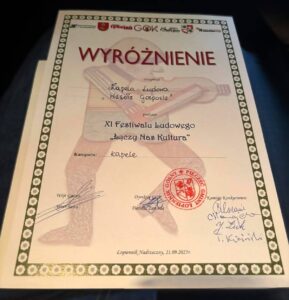 Celem festiwalu było m.in. propagowanie i kultywowanie folkloru ludowego. Wydarzenie miało formę konkursu, podzielonego na 3 kategorie: kapele ludowe (5 wykonawców), zespoły śpiewacze (16 wykonawców) i soliści (6 wykonawców). W pierwszej kategorii z Gminy Zamość wystąpiła formacja „Wesołe Gosposie” z instruktorem Czesławem Bartnikiem. W drugiej kategorii naszą Gminę reprezentował zespół ludowy „Roztoczanki” z Wólki Wieprzeckiej, z instruktorem Danielem Narolskim. Każdy wykonawca mógł zaprezentować 2 utwory. „Roztoczanki” zaśpiewały piosenki, pt. „Weź mnie koniku” i „Tam nad modrą wodą”. Występ spotkał się z ciepłym przyjęciem publiczności, która wynagrodziła nasze pieśniarki gromkimi brawami. Z kolei zespół „Wesołe Gosposie” do występu wybrał 3 piosenki ludowe: „Marysiu, buzi daj”, „Oj zagraj mi muzyczko” i „Ludowe granie”. Atutem grupy jest m.in. wykorzystanie 3 „żywych” instrumentów, akordeonu, skrzypiec i tarabanu, co pozwoliło formacji na udział w mniej licznej konkursowej kategorii kapel. Festiwalowe popisy sceniczne oceniało Jury w składzie: Beata Wolanin, Dorota Maciejewska, Tadeusz Kiciński i Jerzy Żuk. „Wesołe Gosposie” uhonorowano wyróżnieniem i drobną nagrodą finansową. Jurorzy jednogłośnie przyznali, że w tym roku konkurs festiwalowy może się pochwalić bardzo wysokim poziomem artystycznym oraz dużą różnorodnością stylów i form wyrazu. Było to prawdziwe święto kultury ludowej, pełne autentyczności, emocji i pasji. Udział „Roztoczanek” i „Wesołych Gospoś” w XI Festiwalu Ludowym w Łopienniku to powód do dumy dla całej społeczności Gminy Zamość. Dzięki takim wydarzeniom i naszym twórcom ludowym tradycja nadal żyje, przekazywana z serca do serca. Gratulujemy i dziękujemy naszym zespołom, życząc kolejnych udanych występów i nieustającej pasji w krzewieniu ludowości.