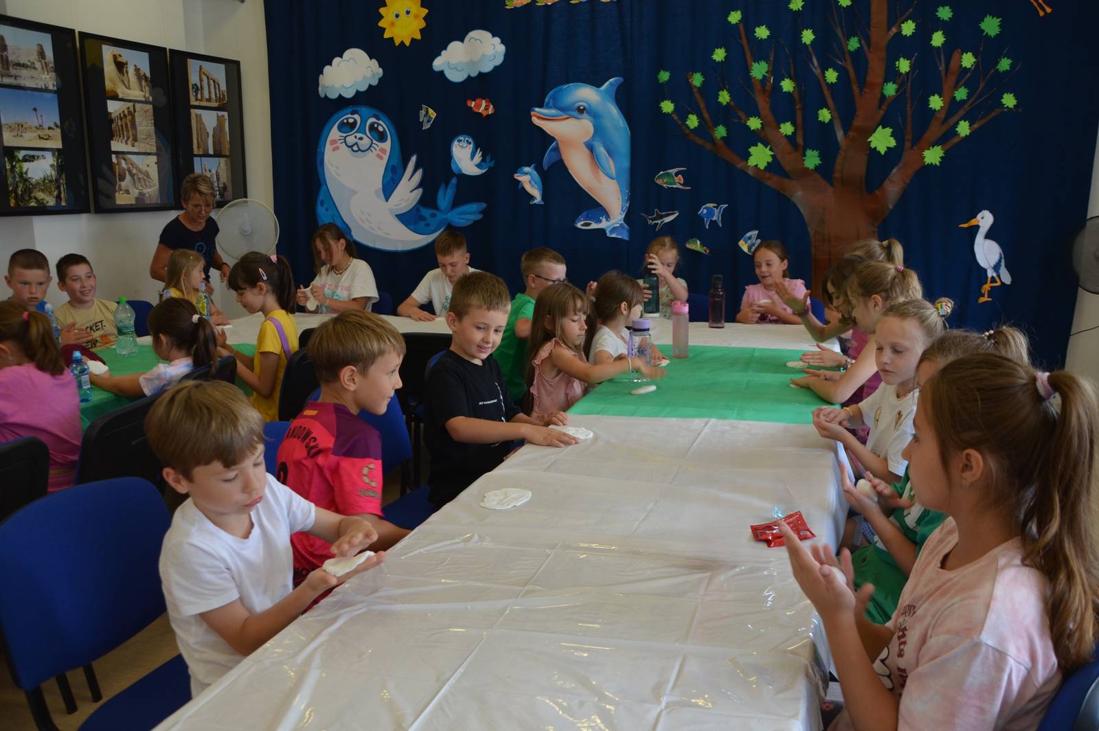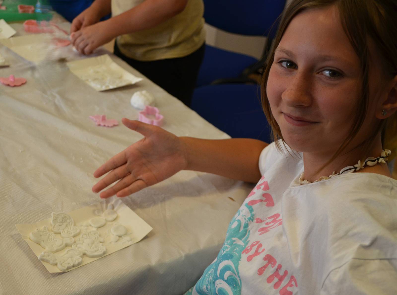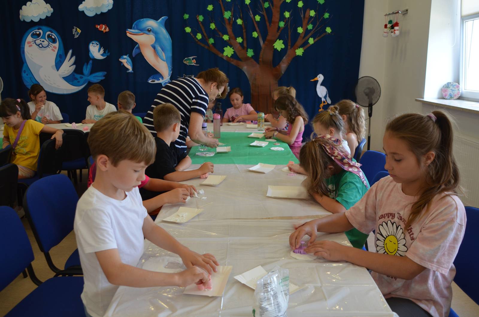 Na wtorkowych (5.08.2025 r.) zajęciach wakacyjnych w siedzibie Zamojskiego „GOK-u Wysokie” odbyły się kolejne warsztaty plastyczne z cyklu „Wakacje w GOK-u i Izbie”. Tym razem tematem przewodnim była tzw. „zimna porcelana”. Temat przyciągnął aż 27 uczestników zajęć manualno-kreatywnych.