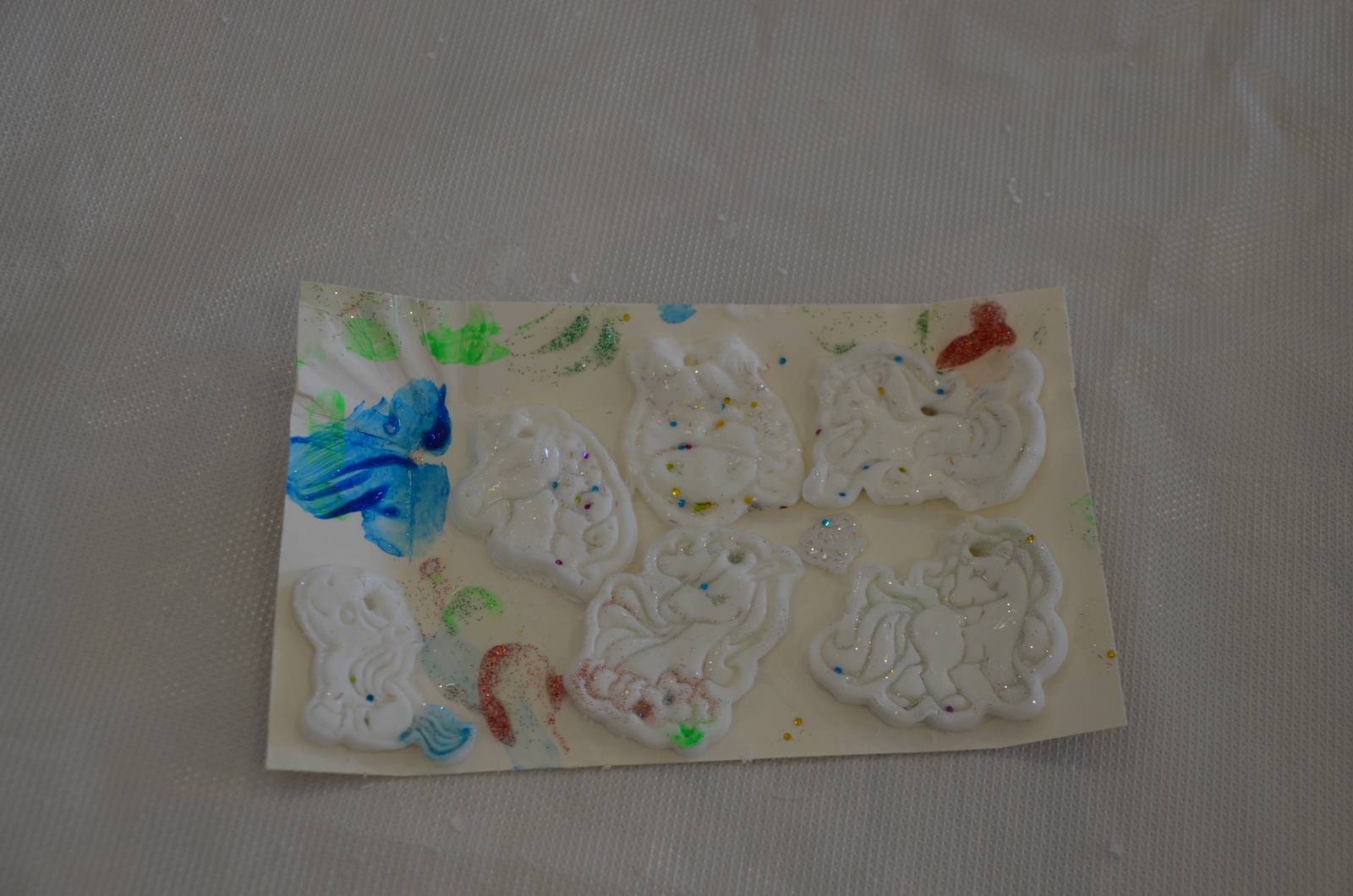 Pod czujnym okiem animatorek z wysockiego GOK-u dzieci miały okazję poznać technikę pracy z masą plastyczną, zwaną zimną porcelaną., Jest to specjalna substancja elastyczna, którą najlepiej przygotować wcześniej, a na zajęciach pozostaje już tylko jej formowanie i ozdabianie. Na początku warsztatów każdy uczestnik uformował z masy małe „placuszki”, które stanowiły bazę do dalszej pracy. Potem za pomocą różnorodnych foremek dzieci wyciskały wybrane kształty – serduszka, zwierzątka i inne fantazyjne formy, kierując się własnymi wyborem, wyobraźnią i kreatywnością. Kolejnym etapem warsztatów było malowanie farbami i ozdabianie gotowych kształtów – nie zabrakło kolorów, brokatu i błyszczących dodatków, które nadawały pracom niepowtarzalny charakter. Dzieci wykazały się ogromnym zaangażowaniem, pomysłowością i zaskakującym skupieniem, a efekty ich pracy były naprawdę imponujące. Na zakończenie każde dziecko otrzymało kolorowy breloczek – pamiątkę z zajęć oraz dowody swojej twórczej pracy. Warsztaty z „zimnej porcelany” były nie tylko świetną zabawą, ale także doskonałą okazją do rozwijania zdolności manualnych i kreatywnego myślenia artystycznego.